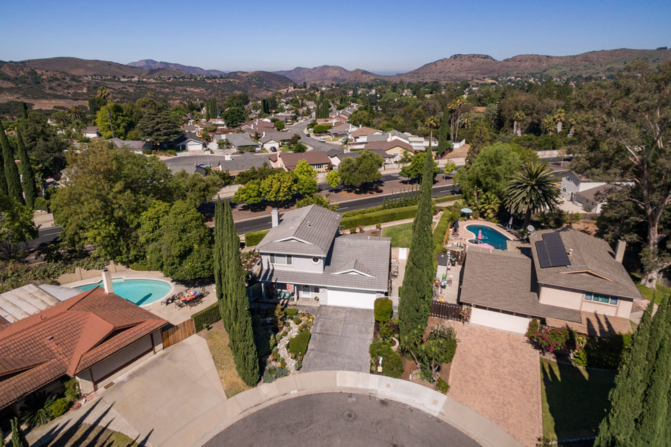 Welcome home to this lovely 4 bedroom, 2 bath cul-de-sac home in Thousand Oaks. Enjoy the amazing sunsets off your backyard, featuring great entertaining space – built-in spa, lovely patio cover, rose garden, horseshoes court, etc. This property is on a large lot – just over .31 acres! If you’re looking for a home with a downstairs master bedroom, this is it! The owners added a lovely sliding door off the master, and some other additional windows, making the home light and bright. Bathrooms have been remodeled. There are 3 bedrooms and a hallway full bath located upstairs. In the kitchen, you’ll enjoy stainless steel double ovens, 5 burner gas cooktop, and a Bosch dishwasher. Freshly painted throughout much of the home in a timeless light neutral, makes it look pristine. The laundry space for the washer/dryer are located in the 2-car garage. The garage has direct access into home. Great schools. Great location. Hurry, this won’t last!